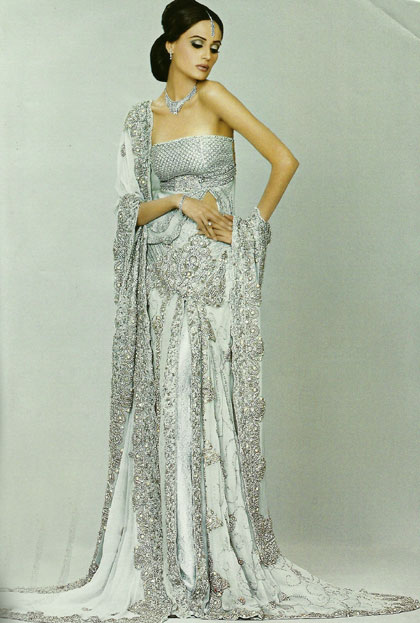 Top: Aqua Ice self textured jamawar diamond shapes effect on bustier. under bust has Swarovski crystal work and sequins shower work.