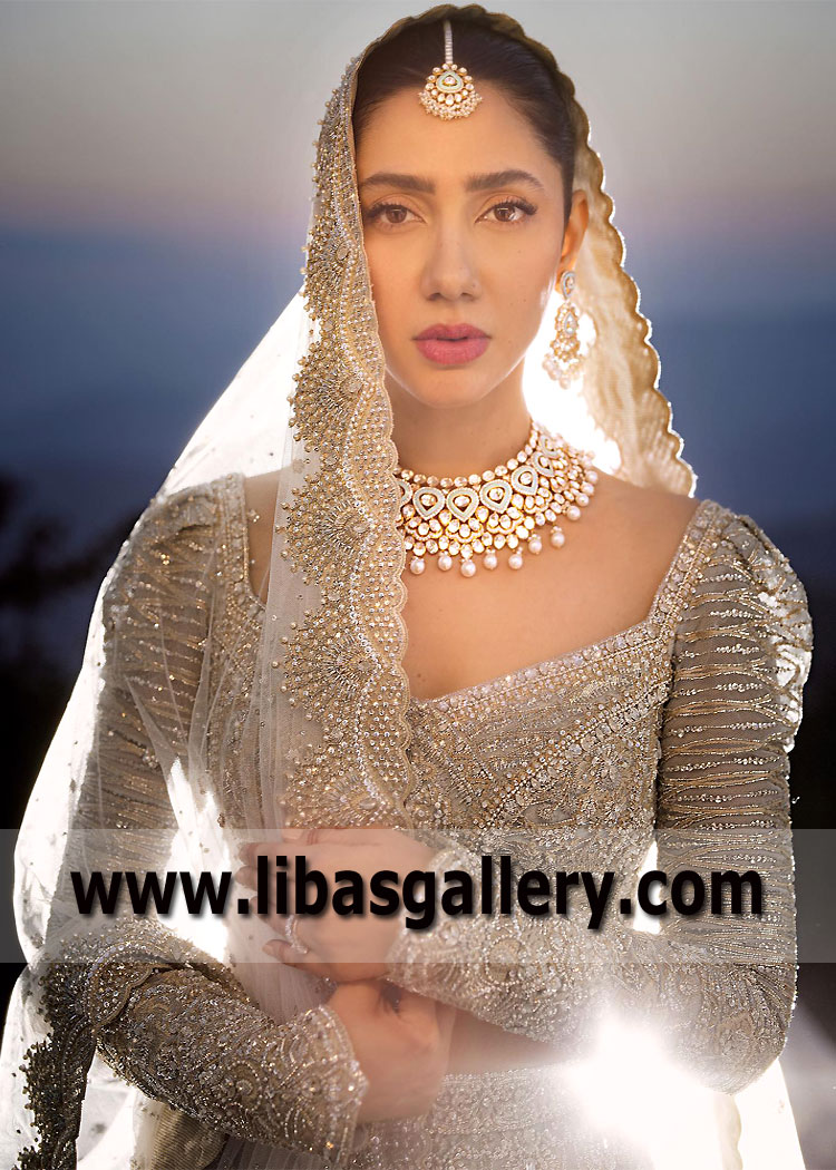 Every photo of you in the image of Mahira Khan is another incredible love story. Dizzyingly beautiful, but absolutely unique. History is being written right now. Feelings and views. Gorgeous bride. Gorgeous wedding. Gorgeous Wedding Dress Faraz Manan. Congratulations to our beautiful bride! We wish you a lifetime of love, health and happiness. Available exclusively in UK USA Canada Australia. Faraz Manan`s new bridal 2024 collection is full of latest style, glamor and couture touches. wedding Dresses that speak to the heart with beautiful modern lehenga silhouettes that suit every bride.