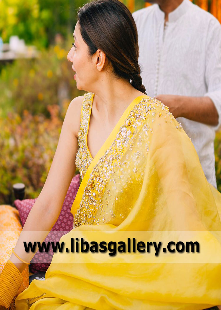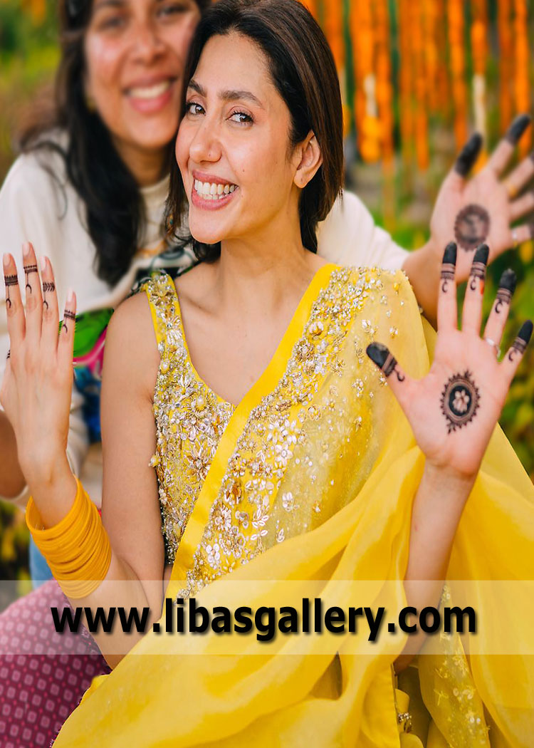 Mahira Khan Maximum Yellow Saree For Mayon Mehendi Ceremony
