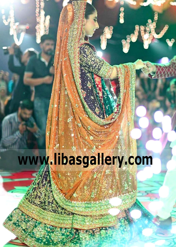 Note: The price of this Bridal dress includes only 3 yards dupatta. Extra charges will apply for the additional dupatta Shawl.