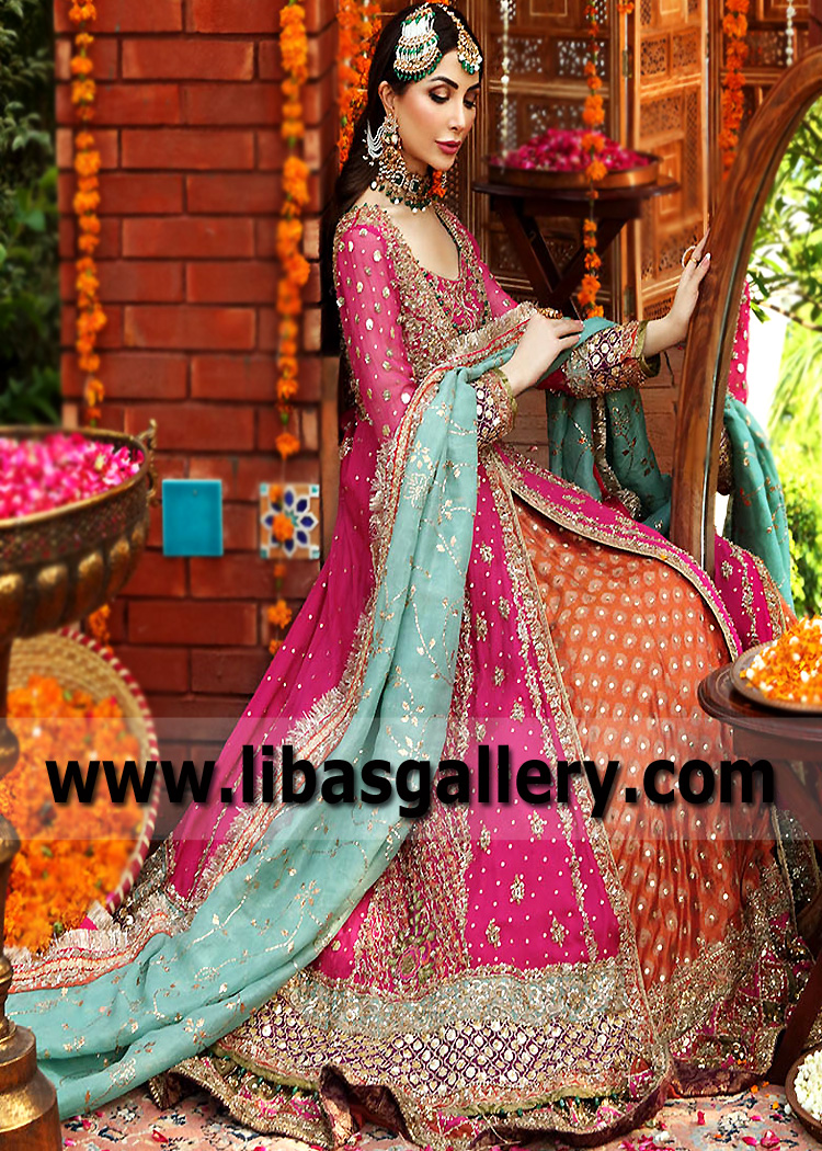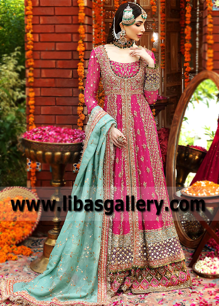 Vivid Cerise Grandidierite Kalidaar Anarkali Lehenga