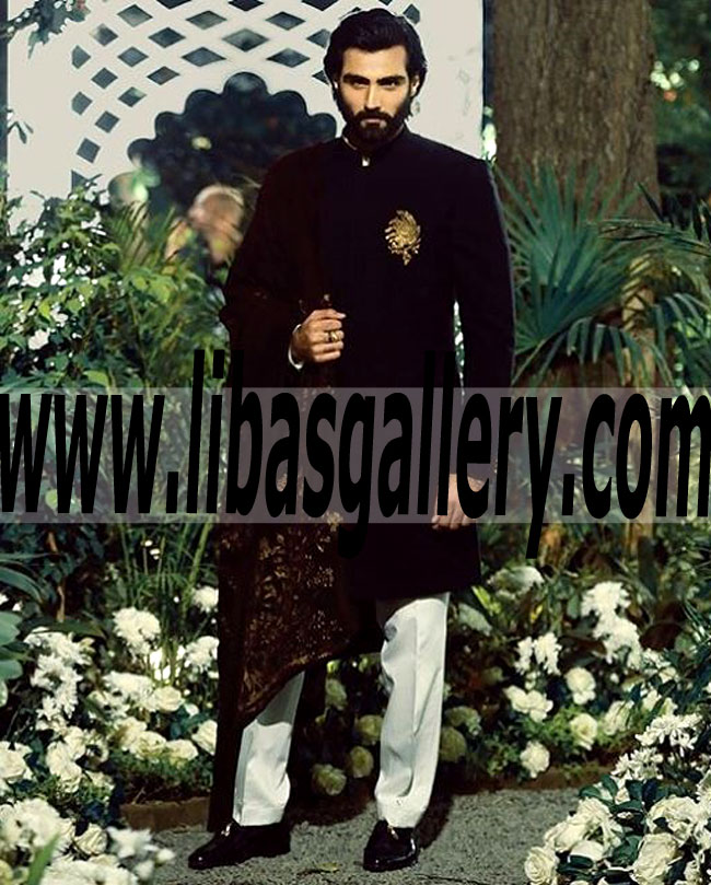Breathtaking Wedding Black Sherwani Suit for Mens