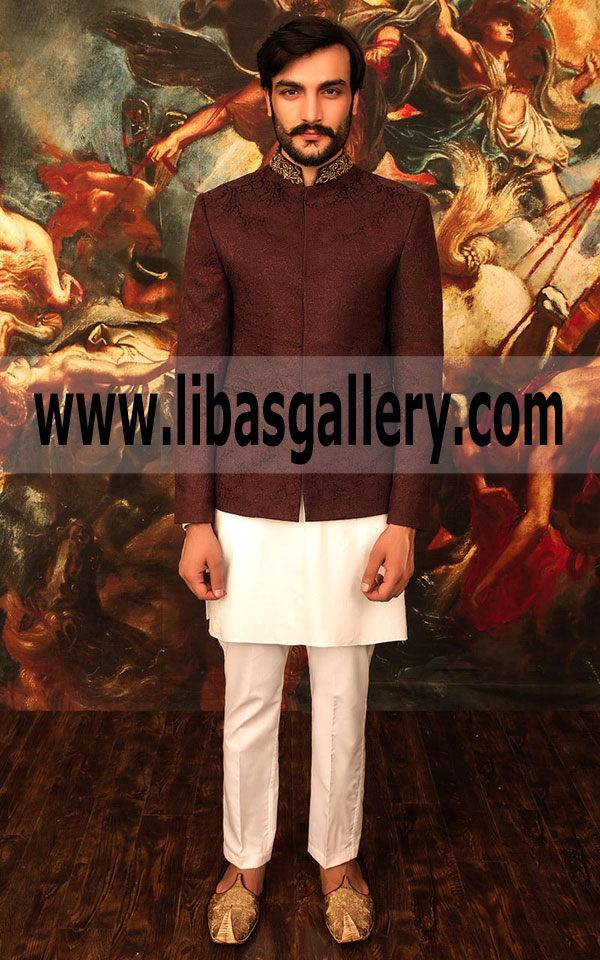 Dark Color Indo Western Style Sherwani Suit for Asian Groom Dulha bhai 2018