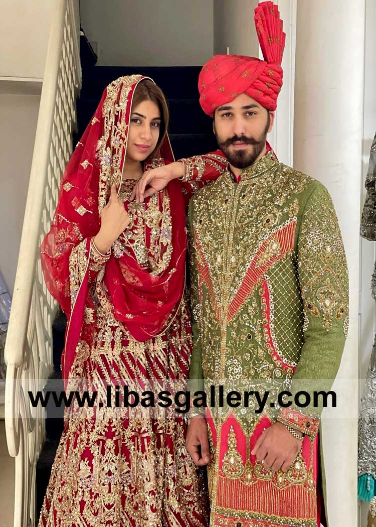 Embroidered Green Wedding Sherwani with Hand Embellishment