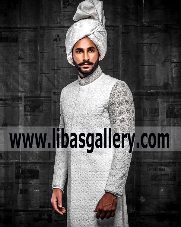 Embroidered Light Color Sherwani Suit 2018 A