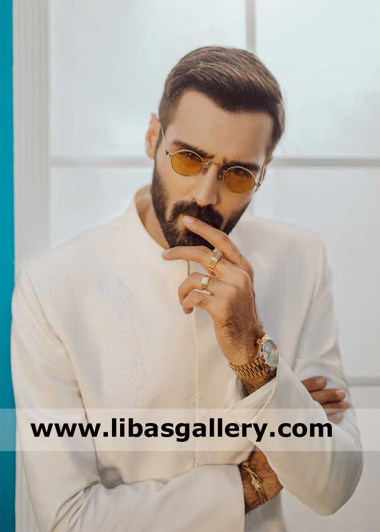Formal White Prince Coat With Delicate Embroidered Motifs In Self
