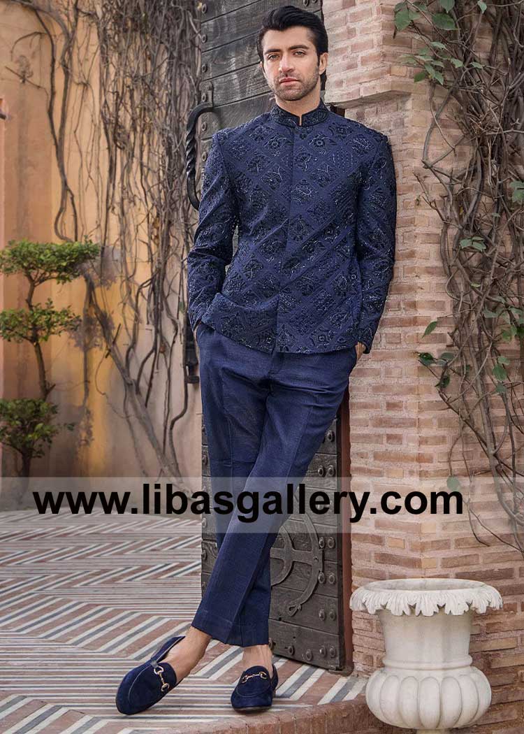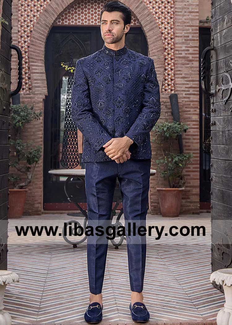 Navy Blue Heavy embroidered light weight Wedding Prince coat