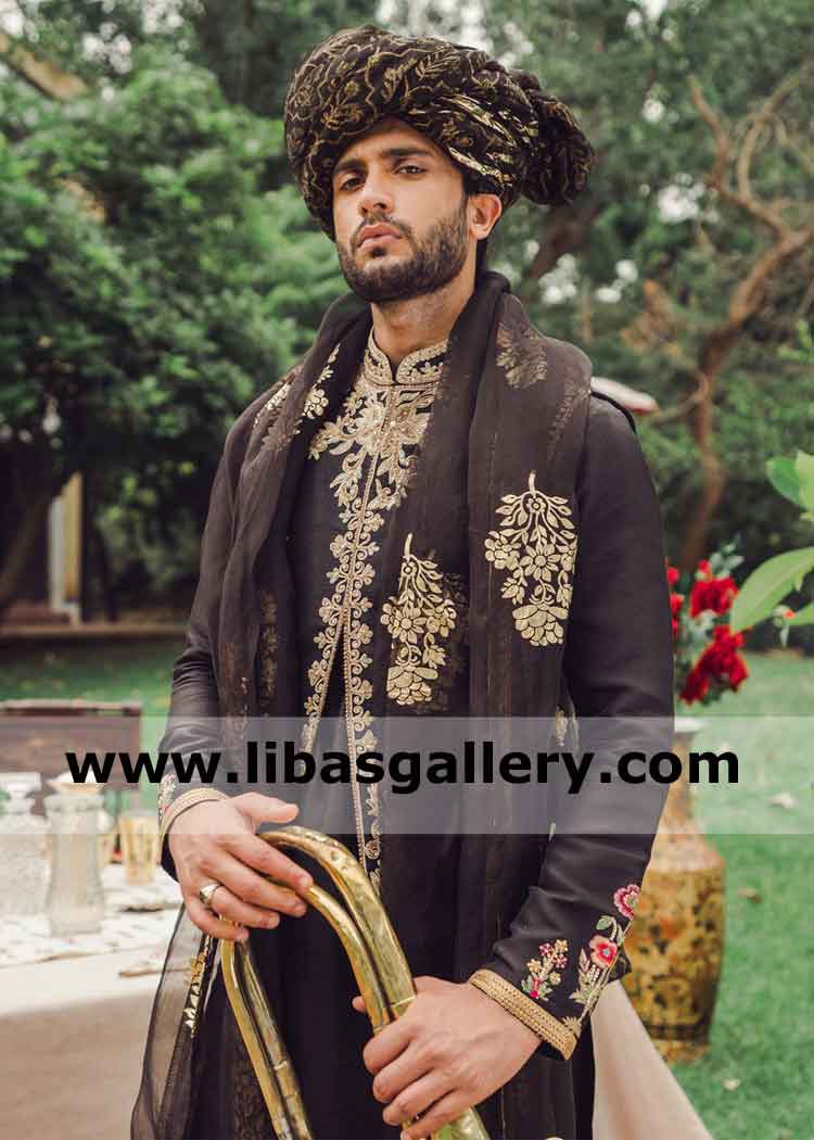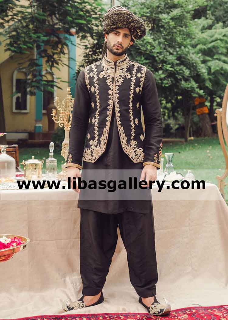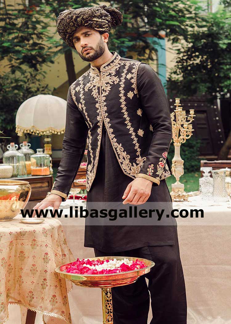 Superior Artistic black Embroidered Waistcoat for Nikah Walima