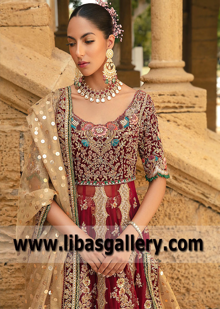 Antique Ruby Jowey Mirella Gown Lehenga