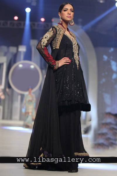 Bottom: Black chiffon Two legged flared sharara has lace border all around