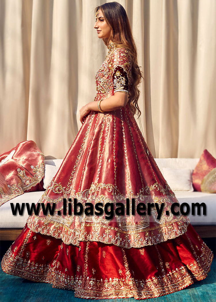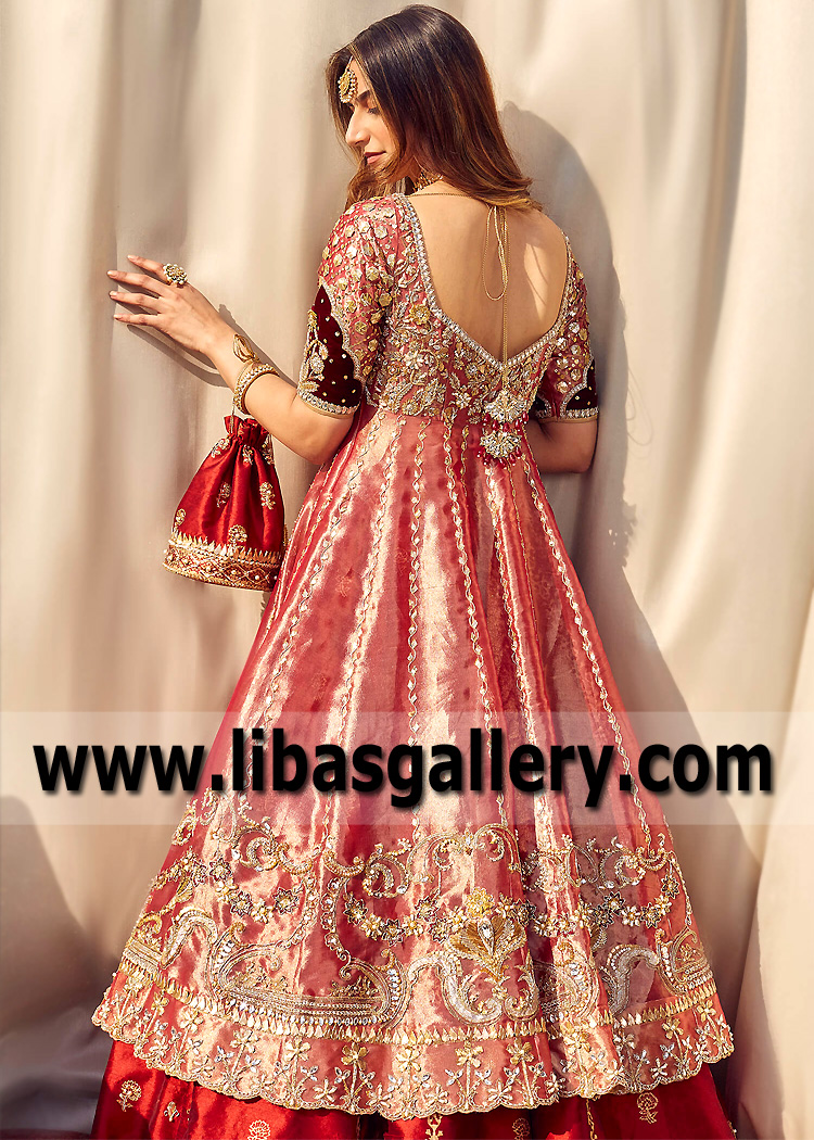Brink Pink Beryl Pishwas and Red Lehenga