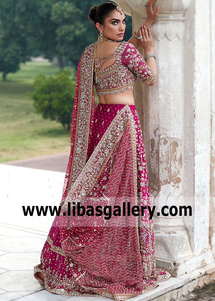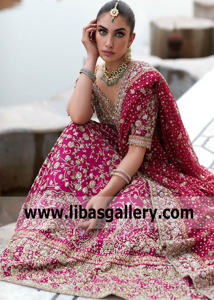 One of our dreamiest luxurious High Waisted bridal Lehenga designs, this stuning Lehenga design made her shine on her romantic special day!