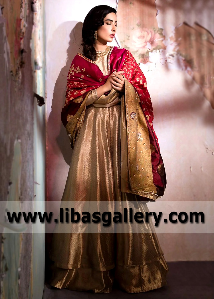 Champagne Cubanite Pishwas with Embellished Shawl