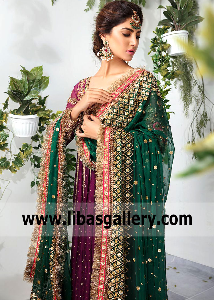 Charming Tyrian Purple Wedding Anarkali Inspired by the Vintage Trend