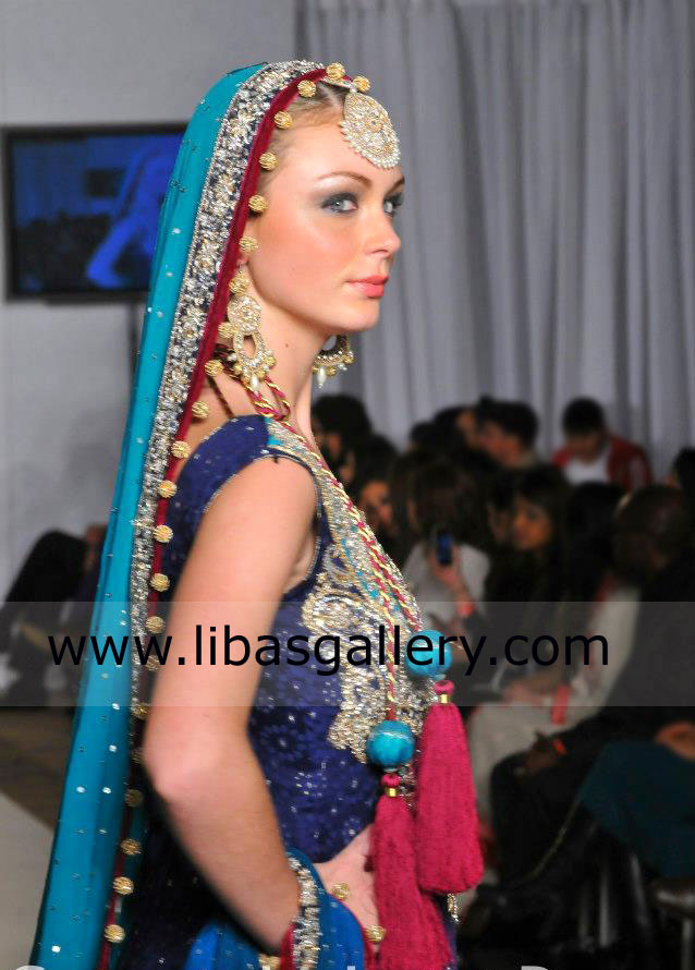 Embellishment work made with:Sequins, beads, dabka, resham and swarovski crystals.