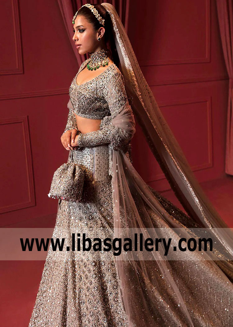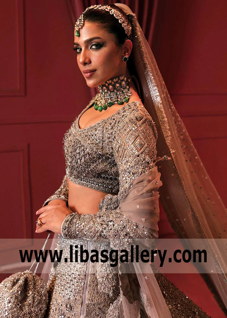 Additional charges will apply for the other net dupatta which is a veil with plain work borders and it can be ordered separately.