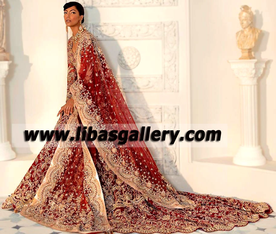 Floor length anarkali bridal adorned with exquisite embroidery and embellishments and detailed work border