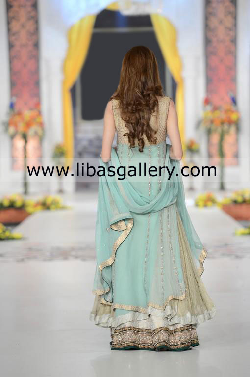 Dupatta/Shawl: Turquoise chiffon dupatta with sequins shower all over.
