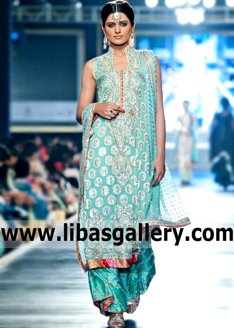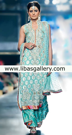 Sequins, beads, dabka, threads and swarovski crystals.