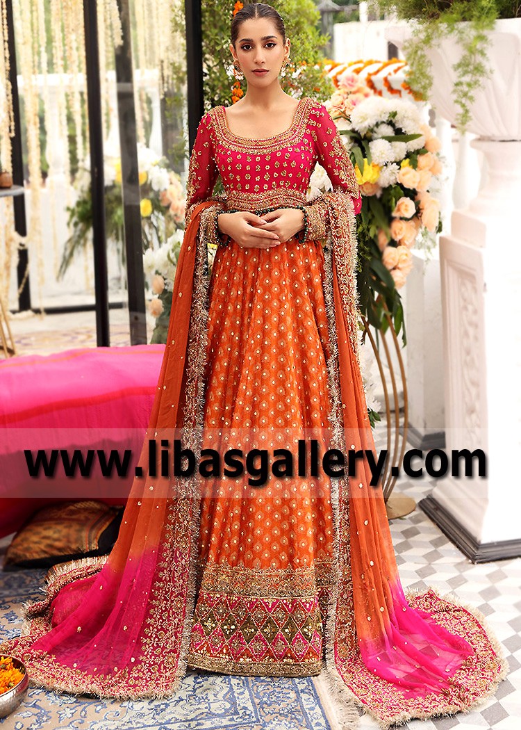 Magenta Spessartite Choli with Giants Orange Lehenga