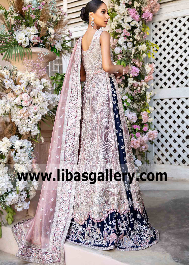 The dress from the new Bridal collection is a luxurious outfit with a long Anarkali, intricate drapery, hand embellishments, shining like a diamond and overshadowing everything.