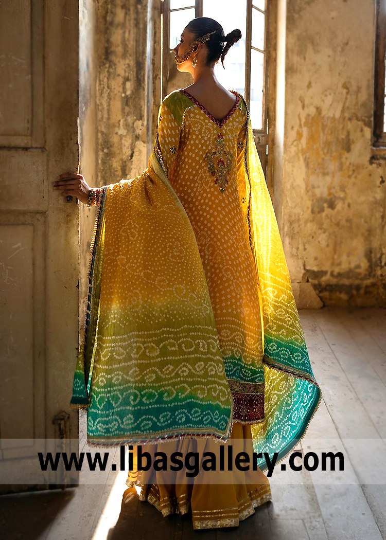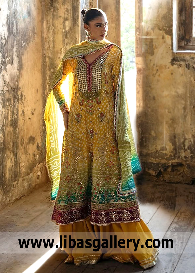 Mikado Yellow Marigold A-line Kameez and Sharara