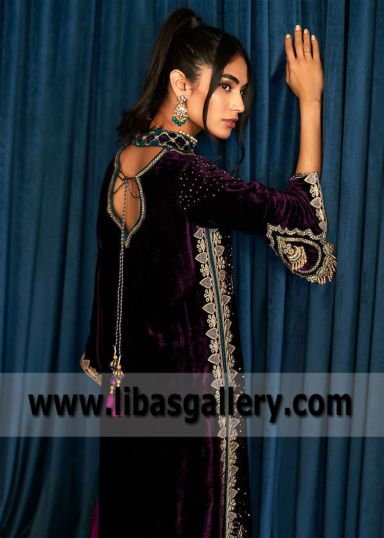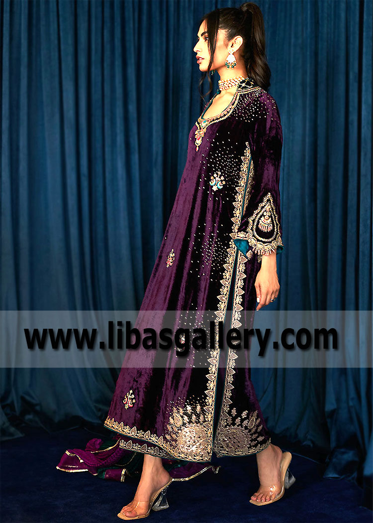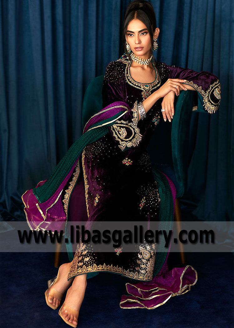 New Aubergine Carnation Party Wear Velvet Dress