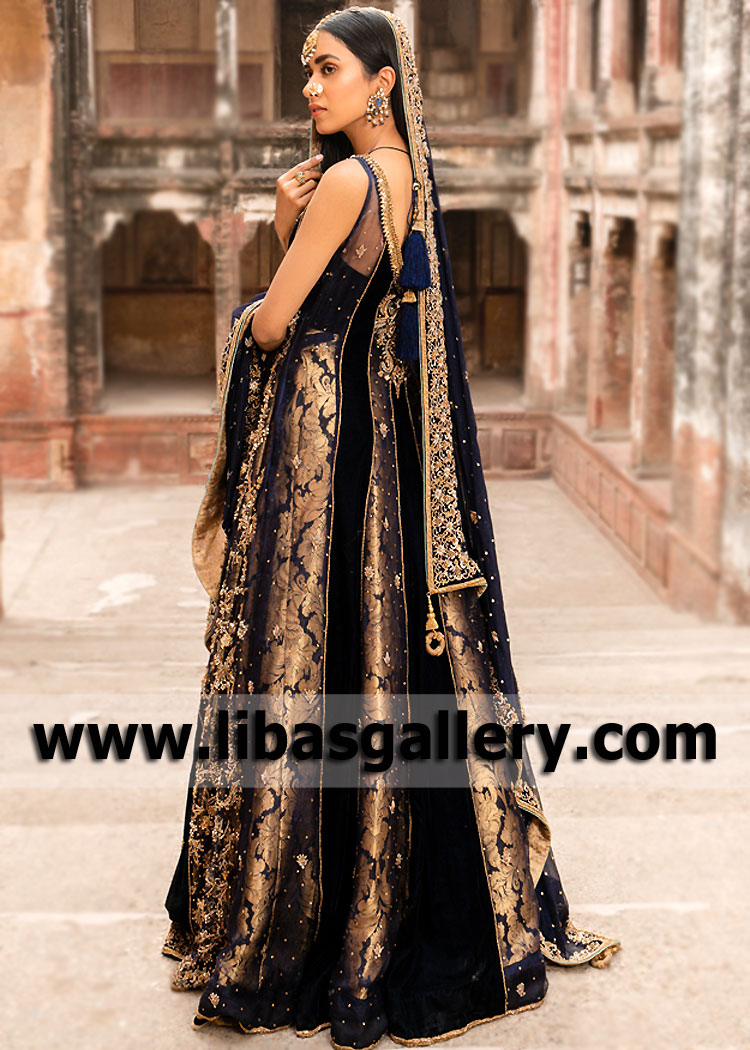Floor length bridal Gown adorned with exquisite embellishments and delicate applique work border on hem