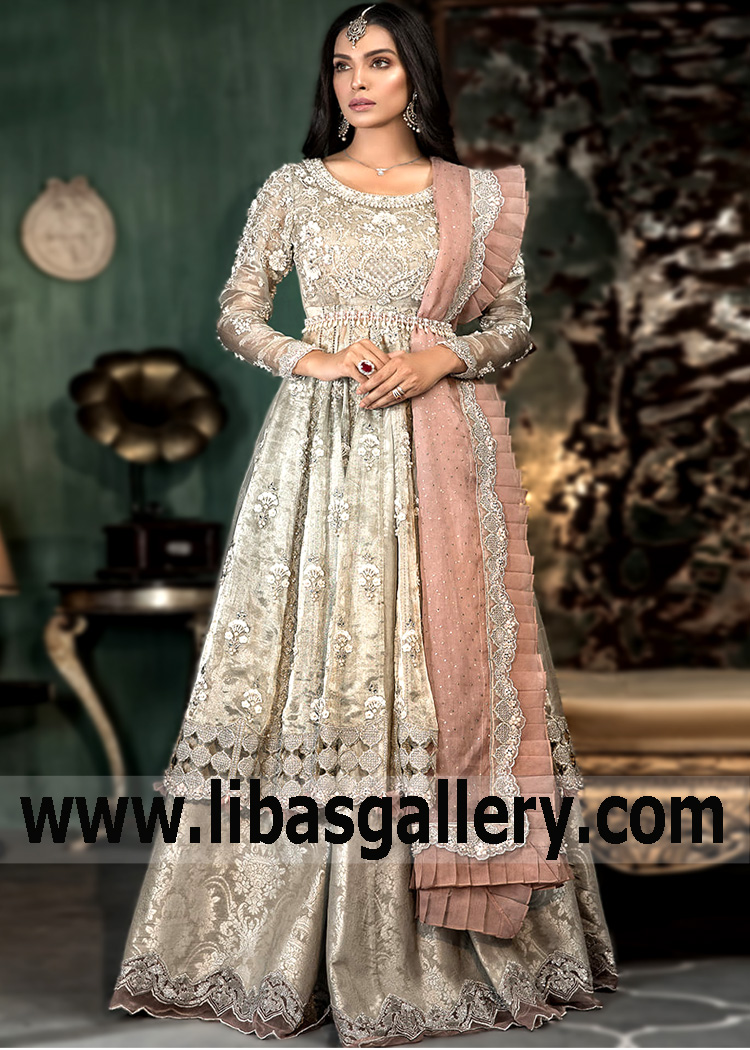 Peshwaz adorned with embroidery and intricate hand embellishments with border