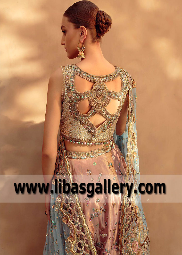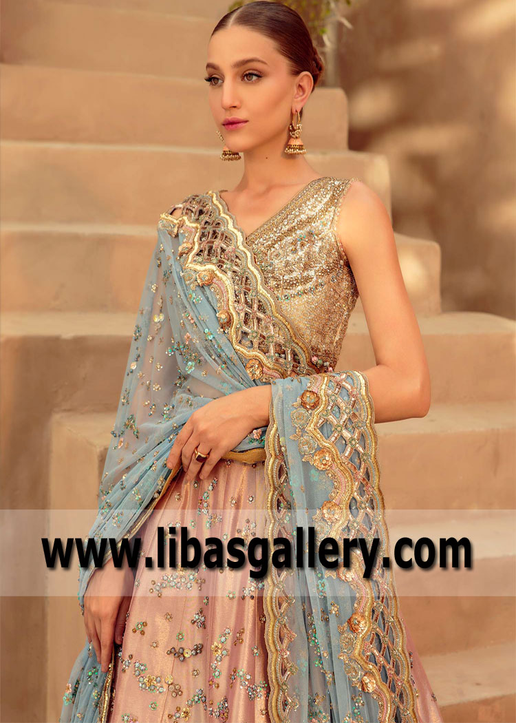 Rose Gold Blue Mazus Bridal Lehenga Dress