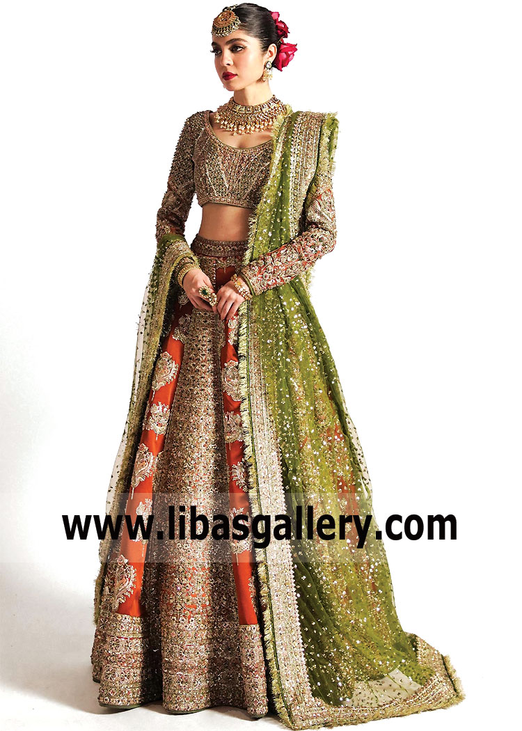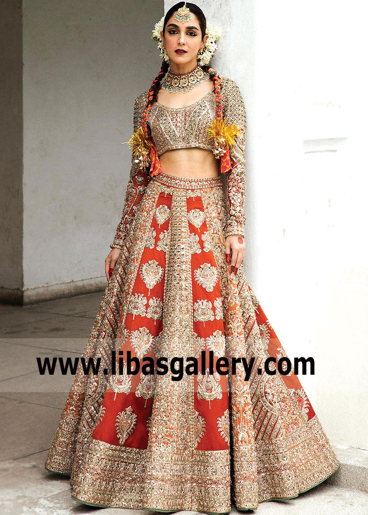Spanish Orange Rust Bridal Lehenga Choli Dress Perfect for our modern bride that wants something a little bit different.