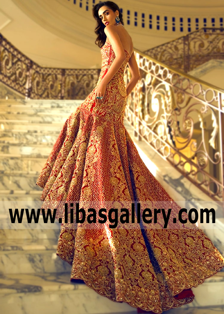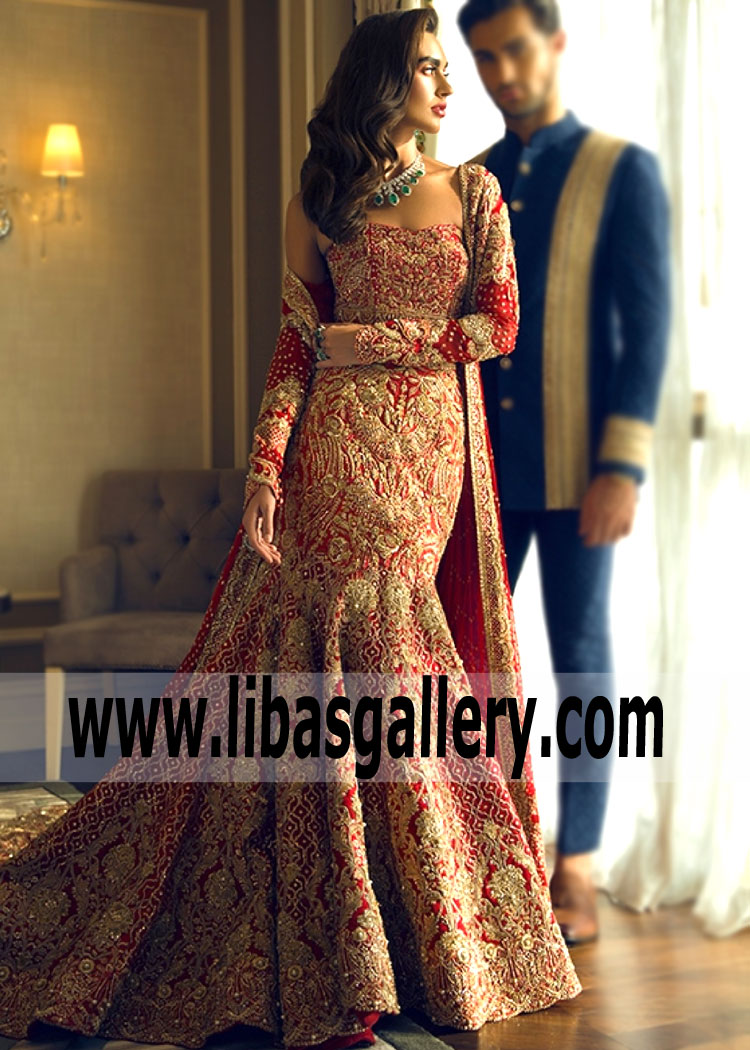 Sparkling Heavily Embellished Red Mermaid Lehenga with Contemporary Details Gown