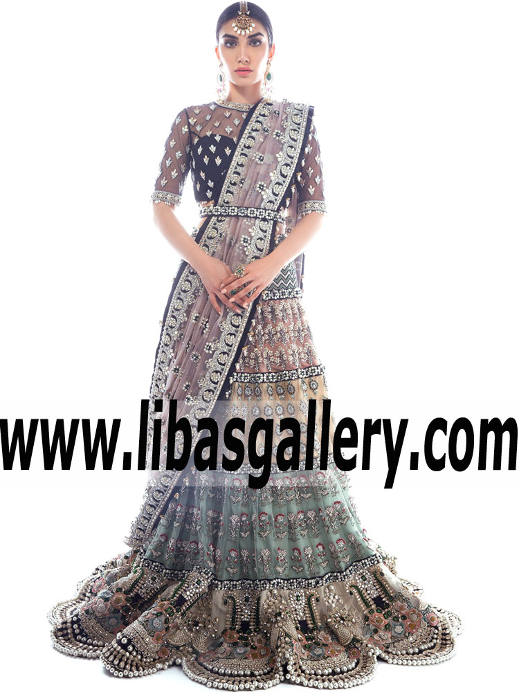 Looking for a black wedding dress to express your style? or Is your heart set on wearing a unique black and Multi Lehenga wedding dress? Find your favorite today with us! Step into a romantic wonderland in this breathtaking A-line wedding Lehenga dress designed by Elan.