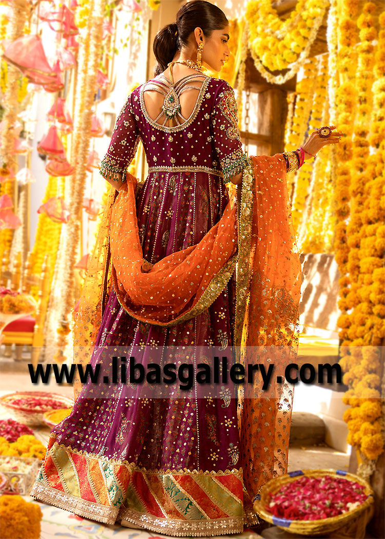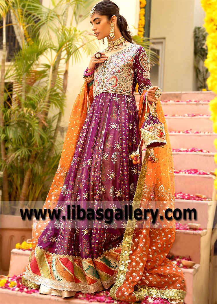 Tyrian Purple Bergenia Bridal Mehndi Dress