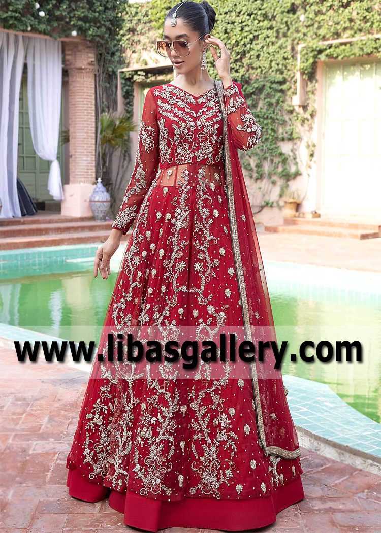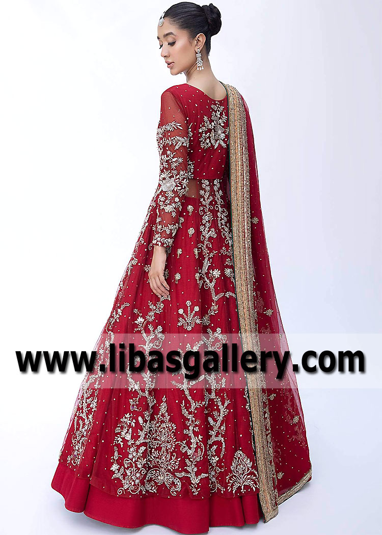 Venetian Red Avant Garde Clematis Pishwas Lehenga