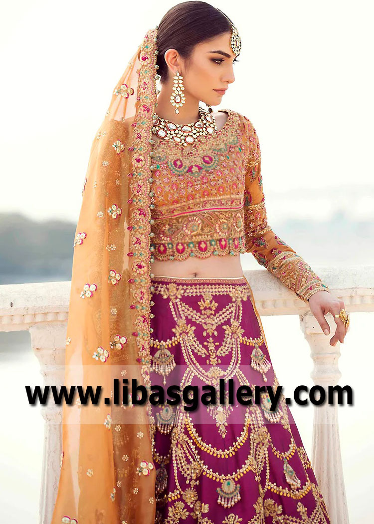 Look magnificent from every angle in a bridal Lehenga with eye catching embroidery.