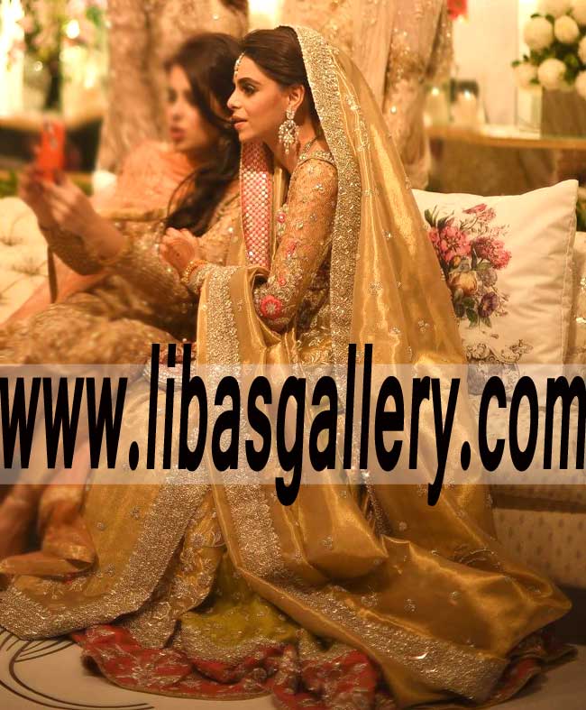 Wonderful Bunto Kazmi Bridal Farshi Lehenga Dress for Reception and Special Occasions