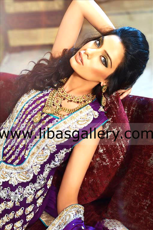 Sequins, beads, dabka, resham and swarovski crystals.