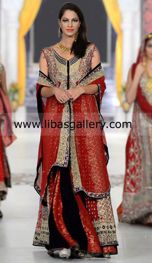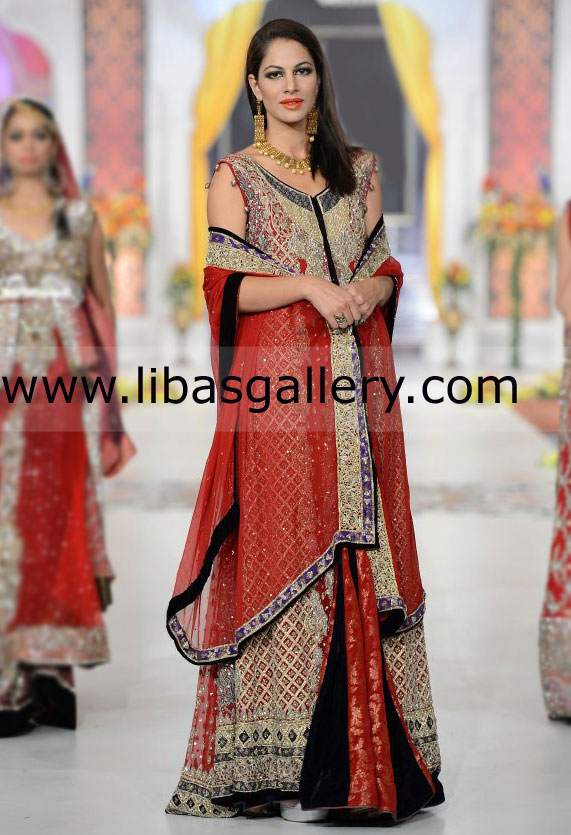 Sequins, beads, dabka, resham and sworovski crystals.