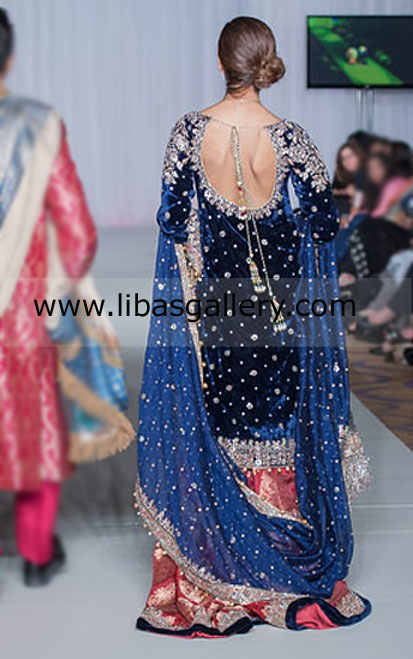 Sequins, beads, dabka, threads and swarovski crystals.