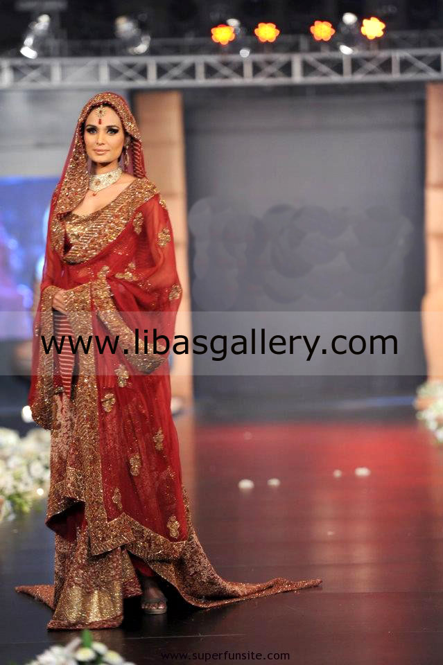 Embellishments made with sequins, beads, cut-glass, kora, dabka, naqshi, Swarovski crystals, rhinestones, diamantes, pearls, marorri, thread, kamdani, zari French knots and badla.