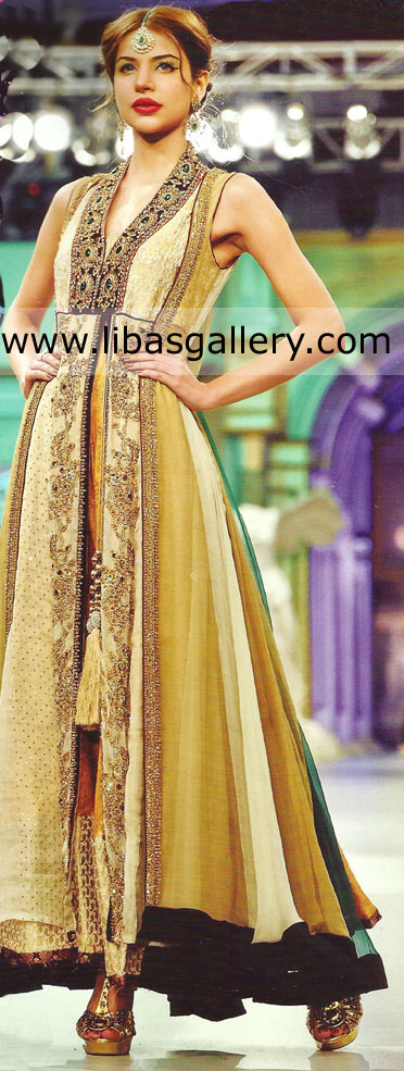 Embellishment work made with:Sequins, beads, dabka, resham and swarovski crystals. 100% pure highest quality imported fabric.