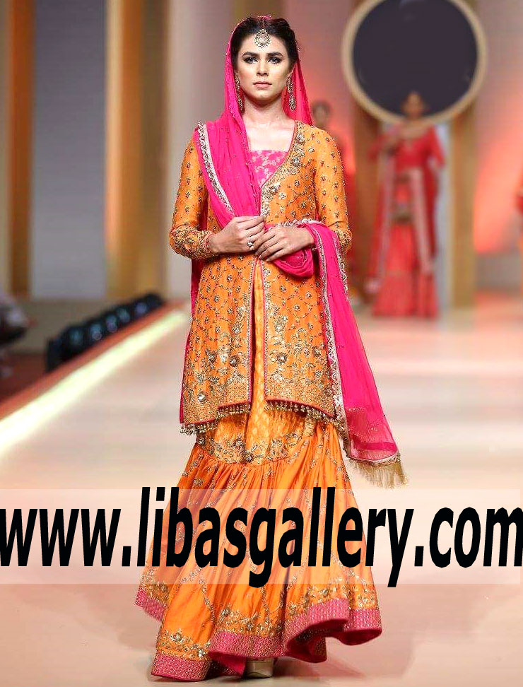 Glorious Persimmon Arum Traditional Bridal Gharara