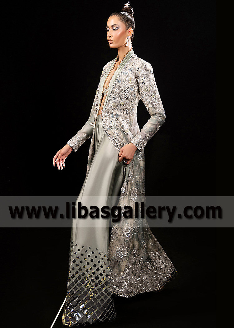 Laurel Green Fuchsite Jacket with Bustier and Trousers