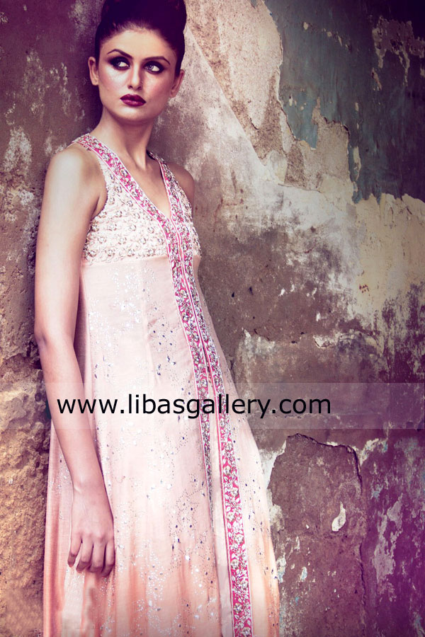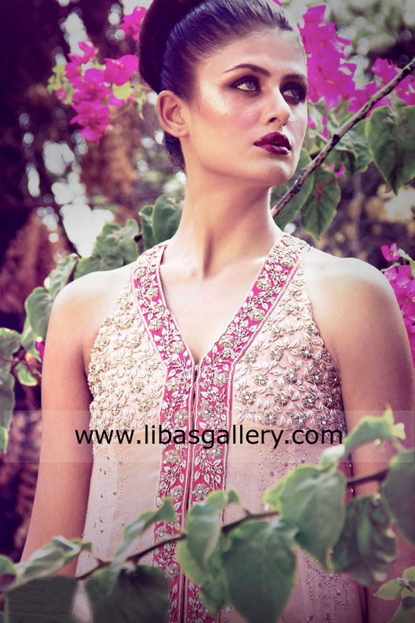 Sequins, beads, dabka, threads, Kamdani and swarovski crystals.