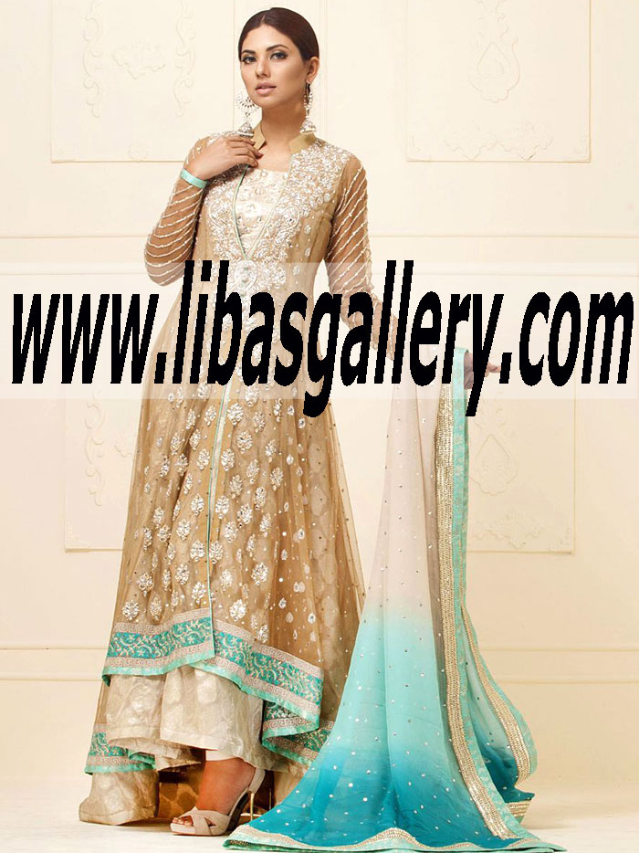 Zainab Chottani BEIGE FLOOR LENGTH NET JACKET